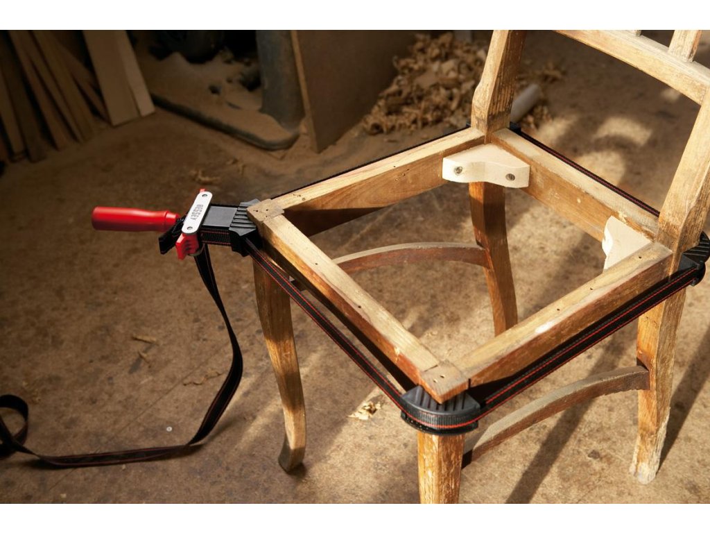 Napínač pásky Bessey pro perfektní a rovnoměrné stažení všech pravoúhlých výrobků s délkou pásky 4 m.