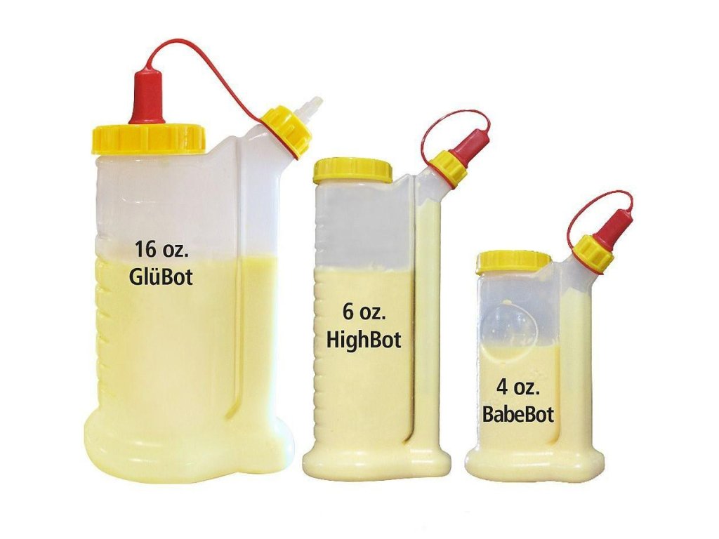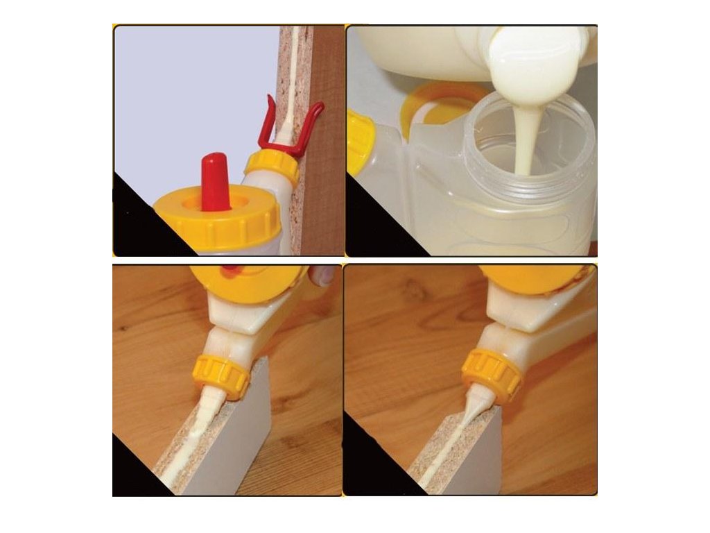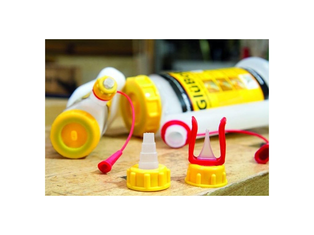 Fľaša s dvojkomorovým systémom, ktorý tlačí lepidlo zdola nahor cez sekundárnu bočnú komoru a tá zaisťuje vždy čerstvé lepidlo. Keď lepidlo z fľaše prestanete vytláčať, je nasávané späť do fľaše, aby nedošlo k zalepeniu špičky. Široké ústie dýzy umožňuje jednoduché nanesenie lepidla a široká základňa fľaše zabraňuje tomu, aby sa prevrátila. Ak sa však napriek tomu prevráti, vôbec to nevadí, lebo lepidlo nevyteká. Fľaša má kryt na dýzu, aby nedošlo k vyschnutiu. Každá fľaša je dodávaná s dvomi dýzami, jednou širokou a druhou úzkou na jemnú prácu.