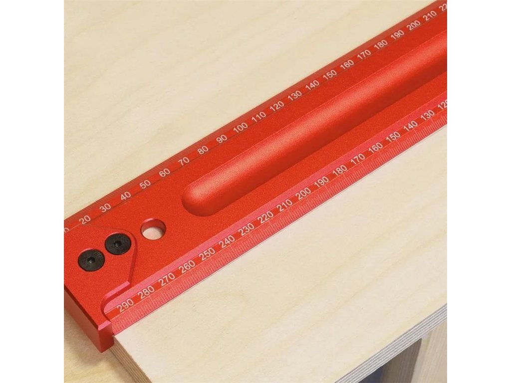 Presné duralové pravítko nielen pre stolárov. Laserom gravírované stupnice zaručujú presnosť a jej skosenie uľahčuje rysovanie ceruzkou.