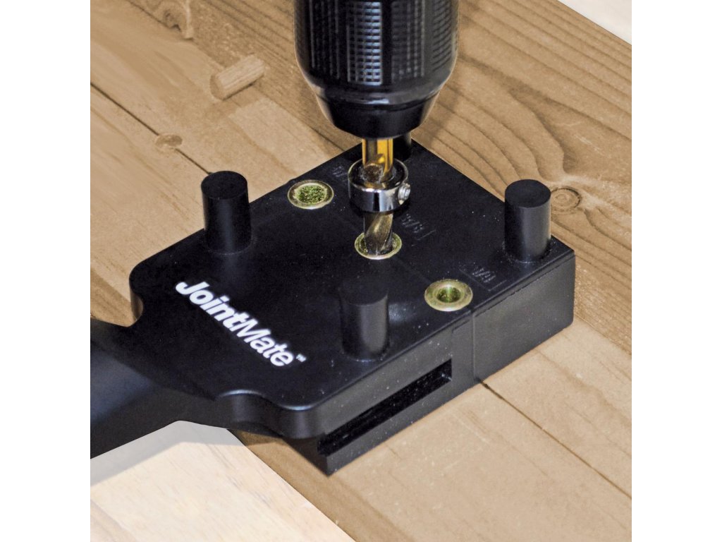 Milescraft - kolíkovací prípravok je pri použití na hrane materiálu samostrediaci a na vŕtanie do plochy je označený ryskou.