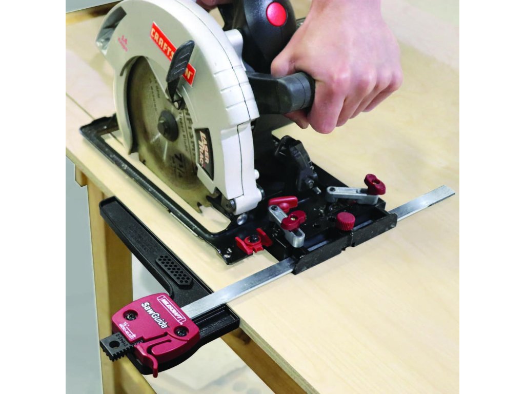 Milescraft SawGuide™ je nielen praktickým pomocníkom, ale aj nástrojom, ktorý umožňuje rýchlu prípravu píly na robenie rôznych typov rezov. Prieme, uhlové, pokosové a pozdĺžne rezy sú s ním hračkou. Keď ho preklopíte, SawGuide sa stane vodidlom na rezanie kružníc a dokáže vytvoriť kružnice s priemermi 155/610 mm.
