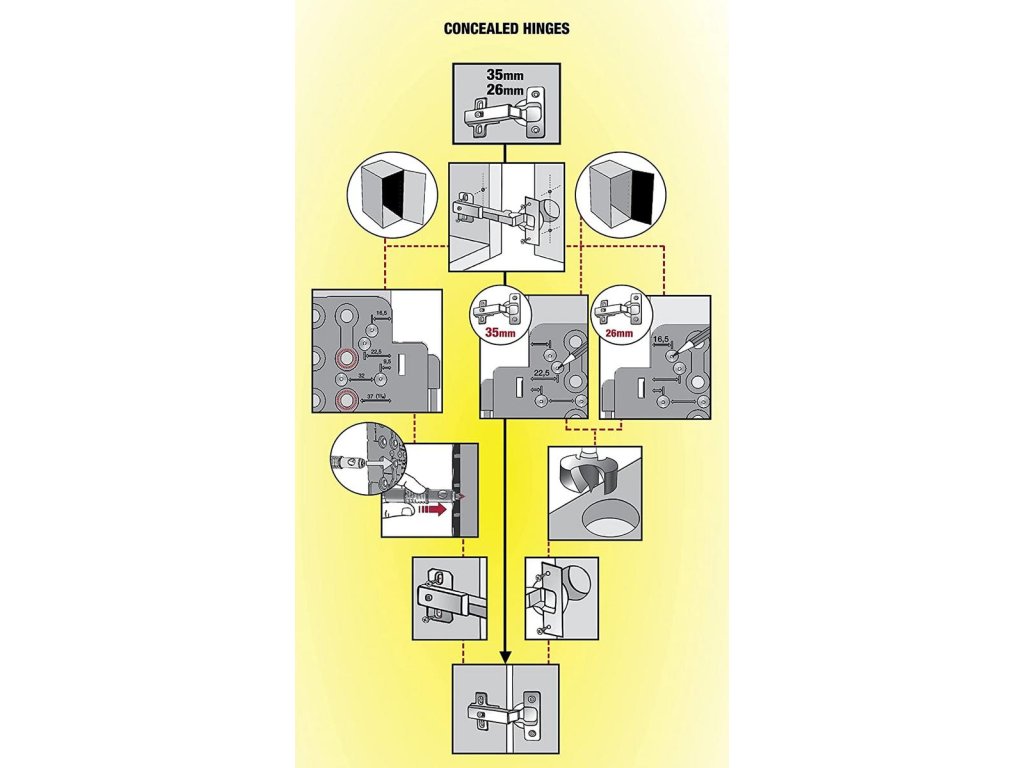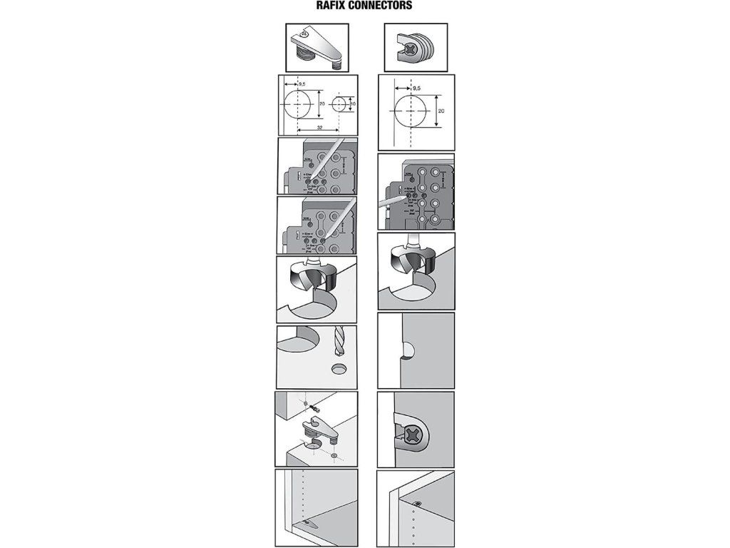 - vŕtanie otvorov pre skryté závesy typu euro