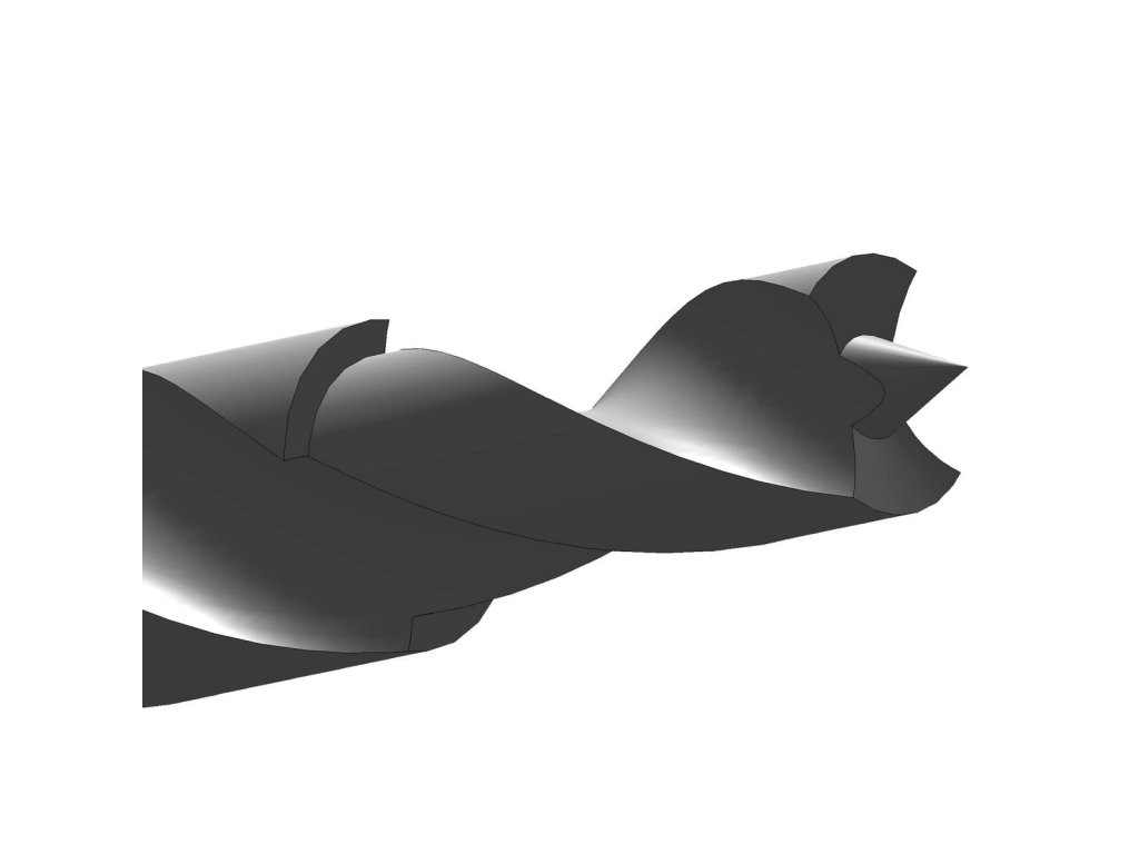 Geometrie břitů vrtáku je uzpůsobena pro čisté a rychlé vrtání do dřevěných materiálů bez štěpení.