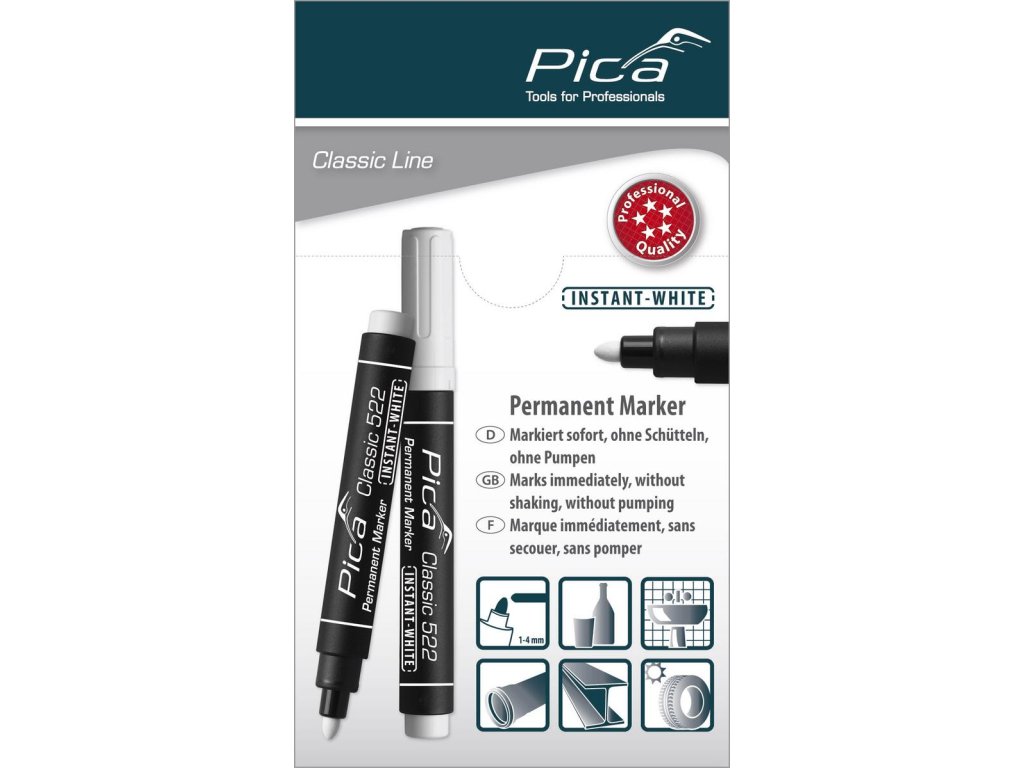 - Píše okamžite takmer na všetky povrchy, vodoodolný atrament na vodnej báze odoláva poveternostným vplyvom a je nezmazateľný po cca 20 sekundách