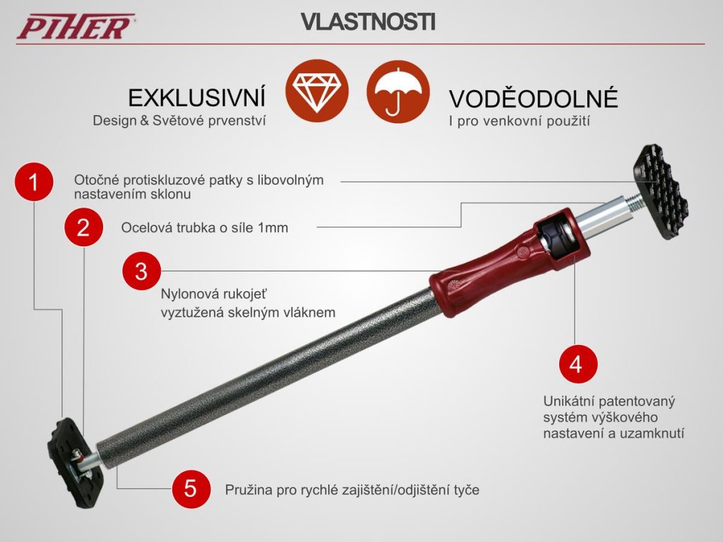 - Rýchlo nastaviteľné rozperné tyče s patentovaným unikátnym zámkom na okamžitú a jednoduchú aretáciu