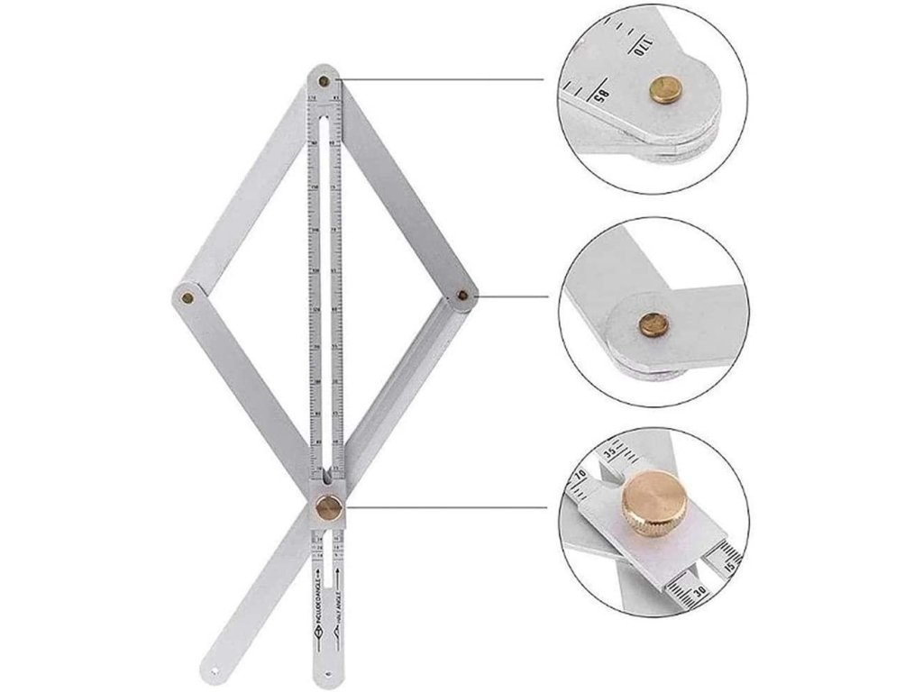 - Jednoduché použitie - položte ho na pracovnú plochu, zasuňte pravítko do požadovaného tvaru a utiahnite skrutky - tak môžete robiť dokonalé meranie a uhly prenášať na akýkoľvek materiál